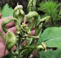 · деформация листьев: нехарактерное скручивание или удлинение,