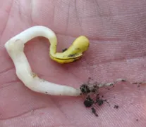 Это создает серьезные риски для сахарной свеклы и подсолнечника — двух культур, которые могут сильно пострадать от последействия этого гербицида. На подсолнечнике визуально это проявляется в виде некрозов и деформаций семядолей и первой пары листьев. Однако эти симптомы являются вторичными. Изначально препарат воздействует на корневую систему: вызывает загнивание нижней части корней и образует перетяжки на уровне локализации гербицида в почве. В результате проростки начинают загнивать, посевы страдают. В некоторых случаях часть непогибших растений может развивать вторичную корневую систему, но после сильного гербицидного стресса их урожайный потенциал значительно снижается.